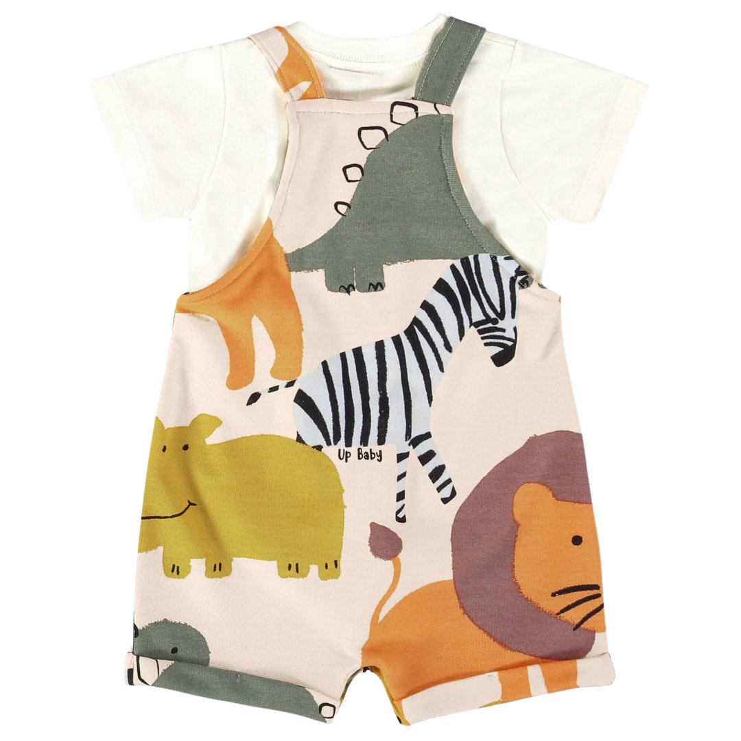 Este conjunto é composto por um body de manga curta em meia malha e uma jardineira em moletom sem felpa, com uma adorável estampa de bichinhos. O body possui fechamento na gola e entre pernas por botões de pressão, enquanto a jardineira apresenta alças reguláveis por botões de madeira, etiqueta personalizada na região do peito e fechamento entre pernas por botões de pressão. A meia malha é um tecido macio e confortável, perfeito para a pele sensível do bebê. O fechamento por botões de pressão na gola e entre pernas torna a vestimenta rápida e prática, além de garantir um ajuste seguro. O moletom sem felpa é confortável e adequado para diversas ocasiões. A estampa de bichinhos é lúdica e adorável, perfeita para bebês. As alças reguláveis por botões de madeira permitem ajustar o comprimento das alças para um caimento personalizado.