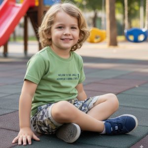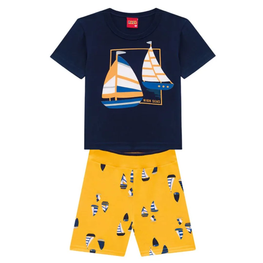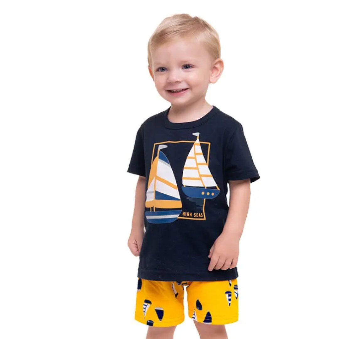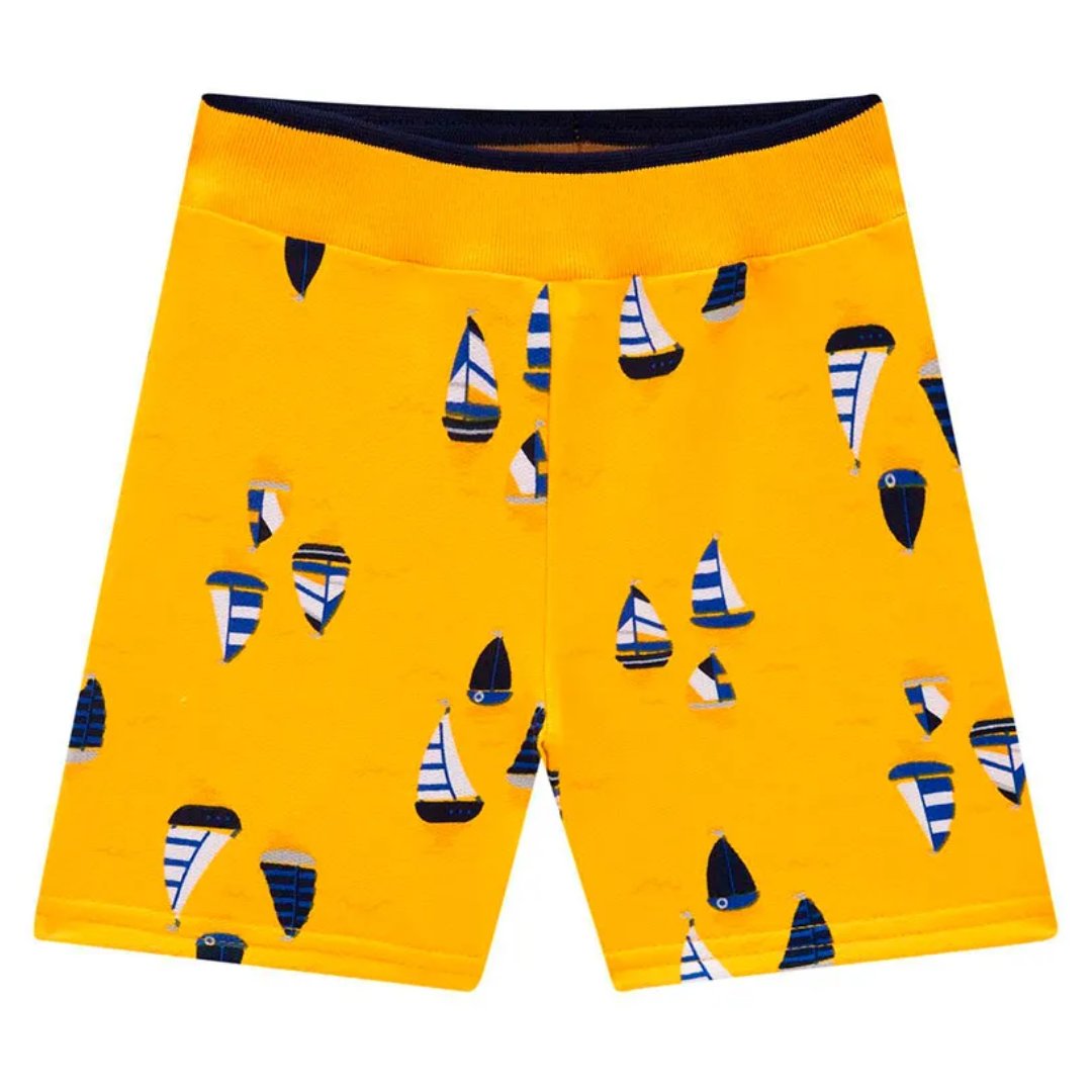 Bermuda em moletom sem felpa, com estampa em todo seu comprimento.