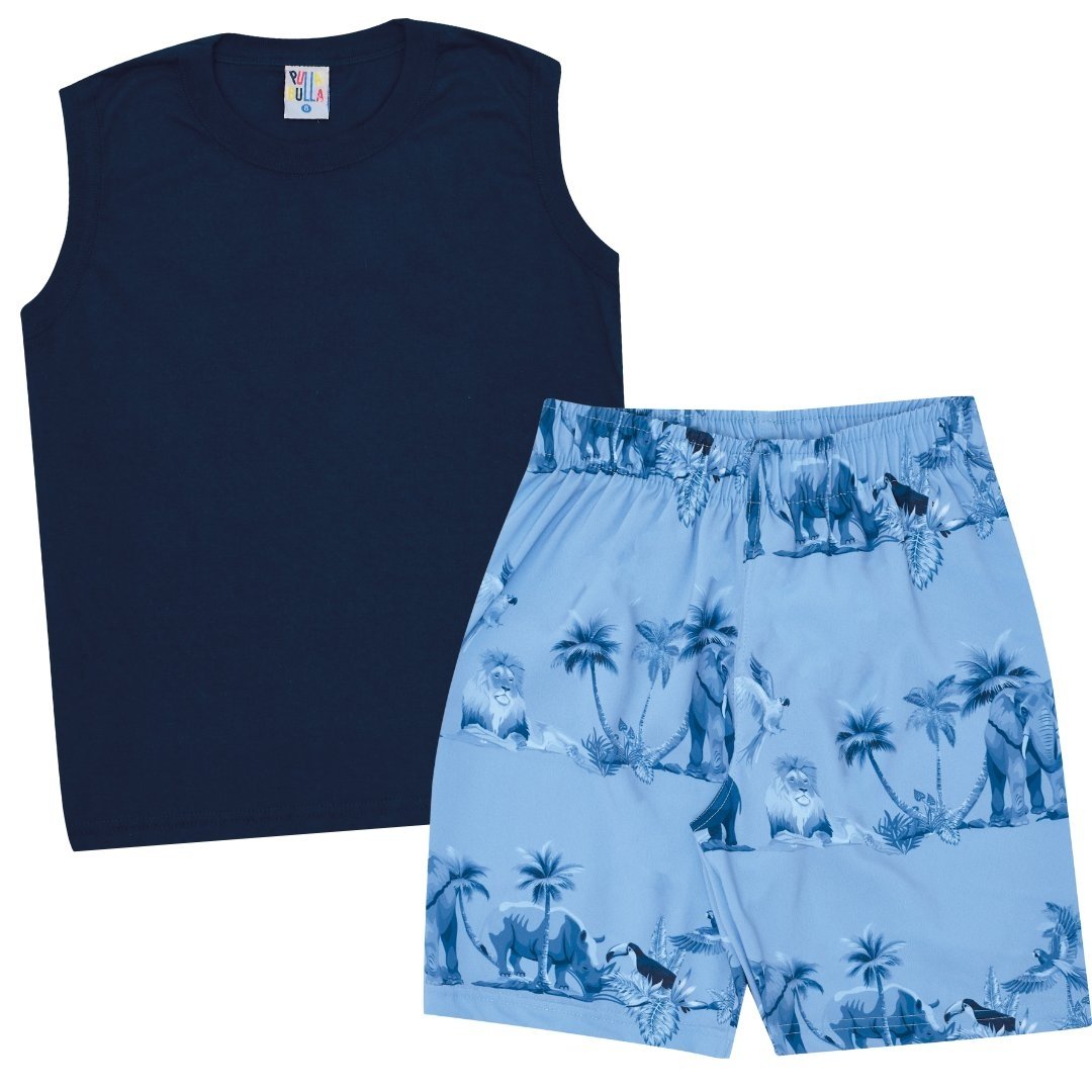 O shorts sublimado confeccionado em nylon traz maior conforto e segurança para seu filho por possuir elastano na cintura, além de ter uma estampa super descolada de safari.