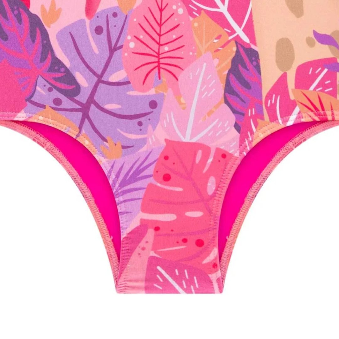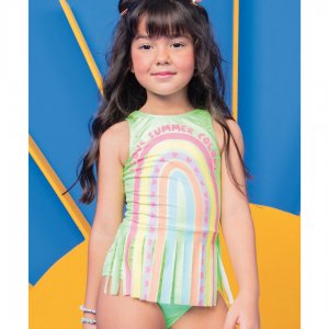 Maiô possui proteção UV 50+ e tecido antimicrobiano, garantindo a melhor qualidade para sua princesa.