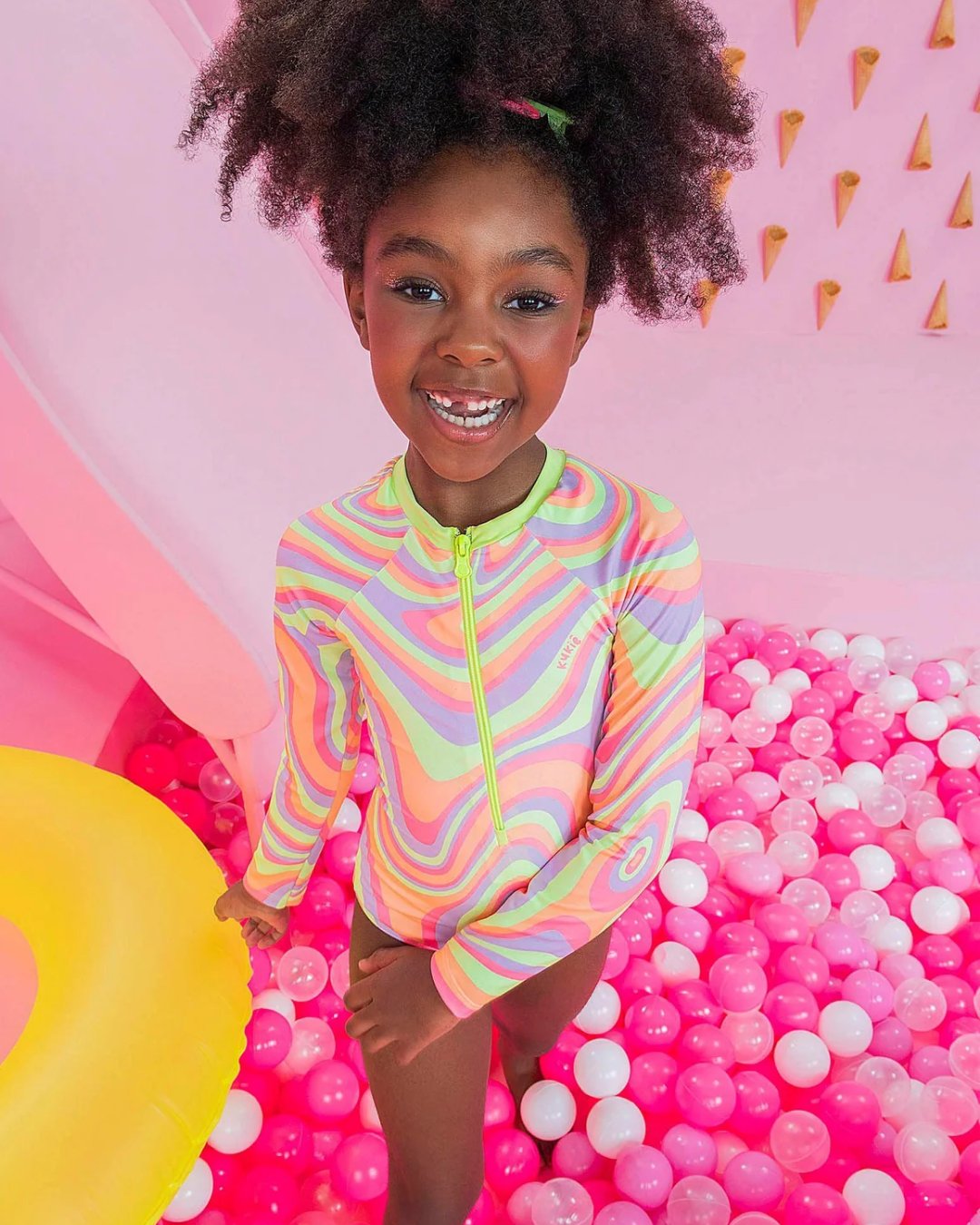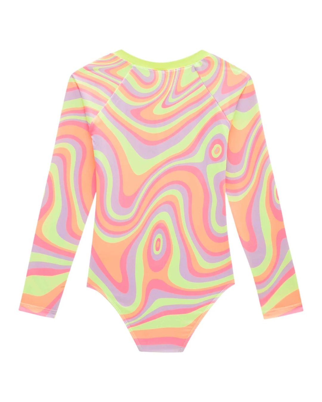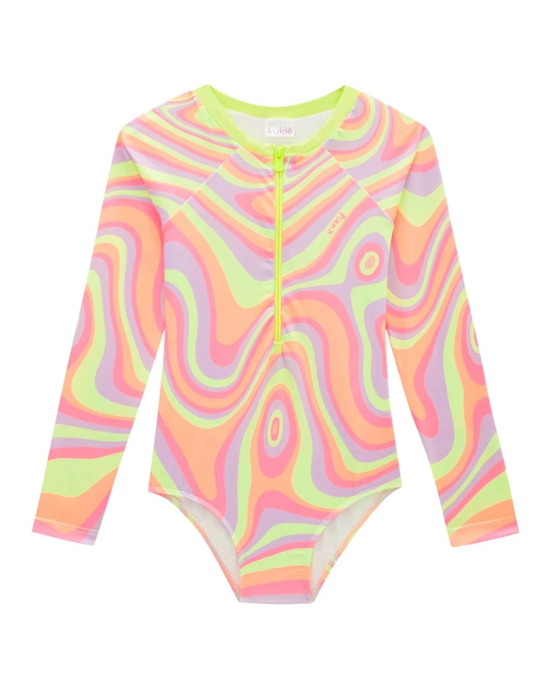 Maiô contém uma bela estampa colorida neon que proporciona diversão,