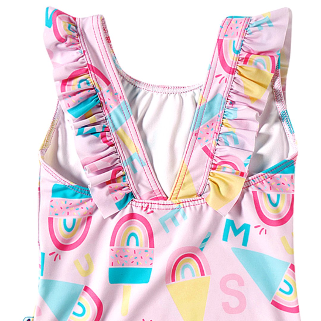 Com tecido em Elastano o Maiô Sorvete Alfabeto Rosa Elastano Toddler