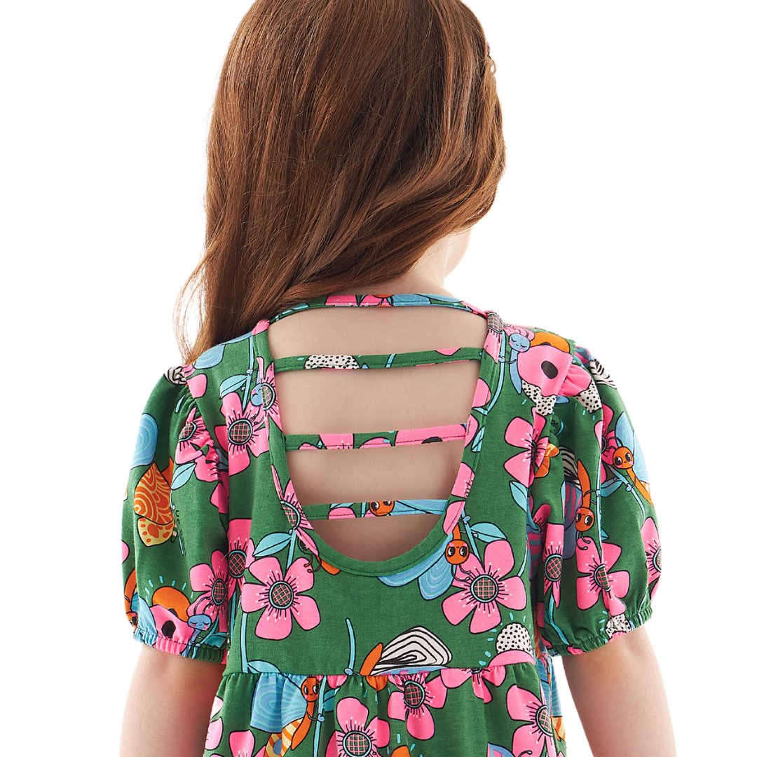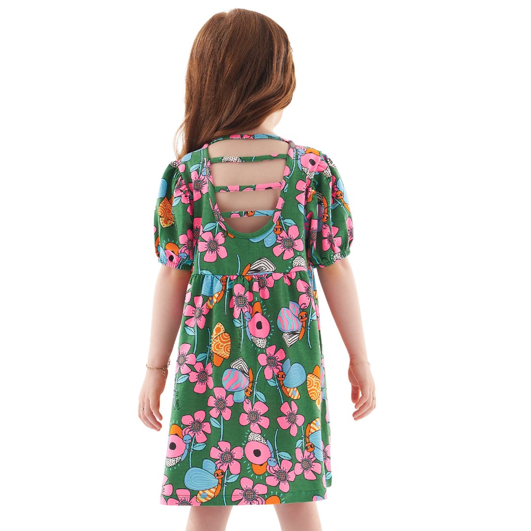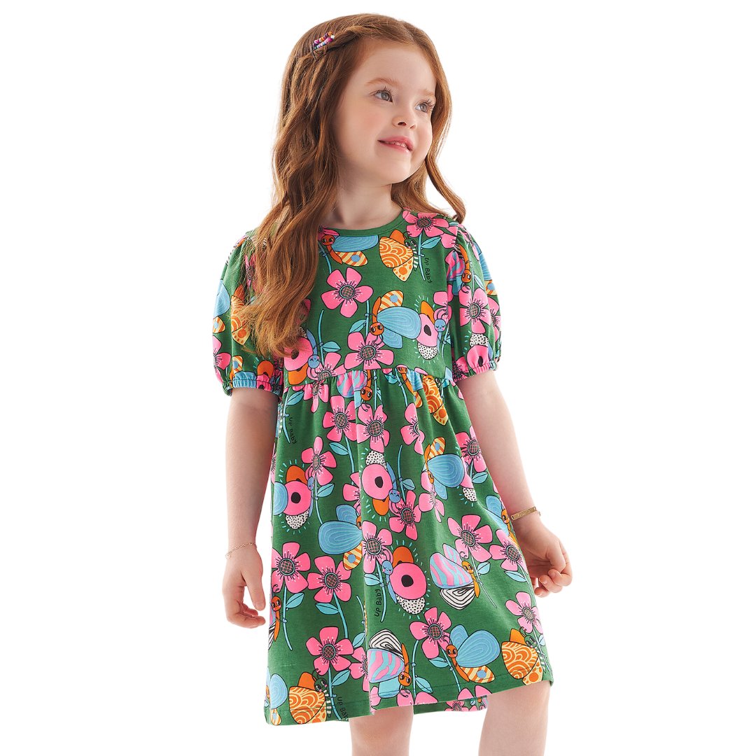 Uma linda estampa com flores em neon, esse vestido é perfeito para sua princesa arrasar em todas as ocasiões sem perder o conforto.